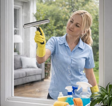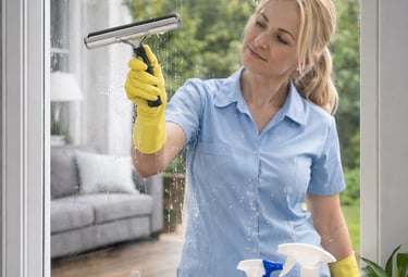 Professional interior and exterior window cleaning, including blinds, for a clear and polished finish.